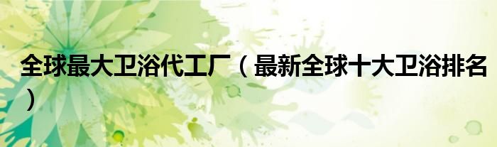 大家好,精选小编来为大家解答以上的问题。全球最大卫浴代工厂,最新全球十大卫浴排名很多人还不知道,现在让我们一起来看看吧!