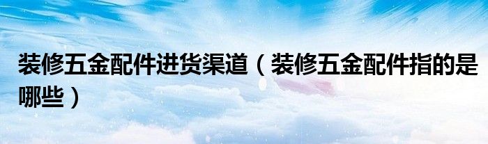 装修五金配件进货渠道(装修五金配件指的是哪些)