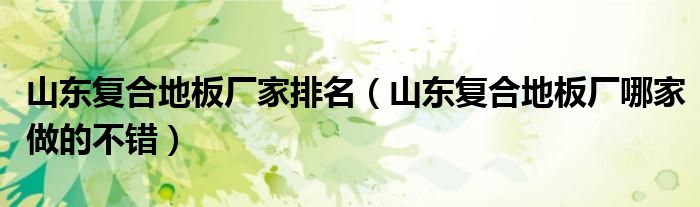 导读 大家好,精选小编来为大家解答以上的问题。山东复合地板厂家排名,山东复合地板厂哪家做的不错很多人还不知道,现在让我们一起来看看吧!1