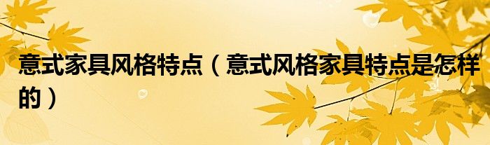 导读 大家好,精选小编来为大家解答以上的问题。意式家具风格特点,意式风格家具特点是怎样的很多人还不知道,现在让我们一起来看看吧!1、意式