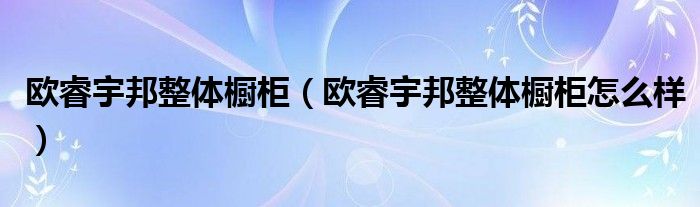 欧睿宇邦整体橱柜(欧睿宇邦整体橱柜怎么样)