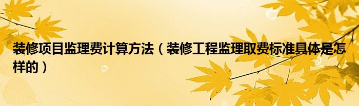 装修项目监理费计算方法(装修工程监理取费标准具体是怎样的)