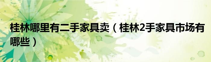 大家好,精选小编来为大家解答以上的问题。桂林哪里有二手家具卖,桂林2手家具市场有哪些很多人还不知道,现在让我们一起来看看吧!