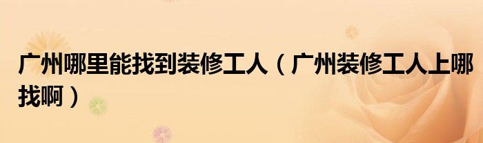 广州哪里能找到装修工人(广州装修工人上哪找啊)