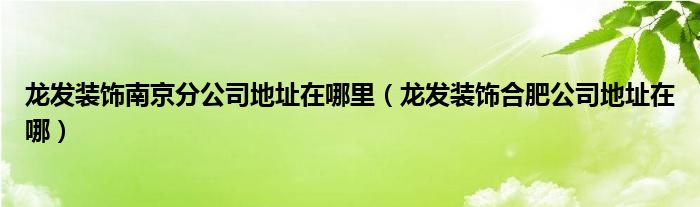 龙发装饰南京分公司地址在哪里(龙发装饰合肥公司地址在哪)