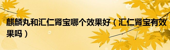 麒麟丸和汇仁肾宝哪个效果好(汇仁肾宝有效果吗)