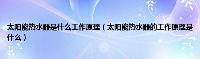 太阳能热水器是什么工作原理(太阳能热水器的工作原理是什么)