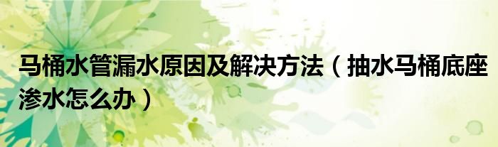 马桶水管漏水原因及解决方法(抽水马桶底座渗水怎么办)