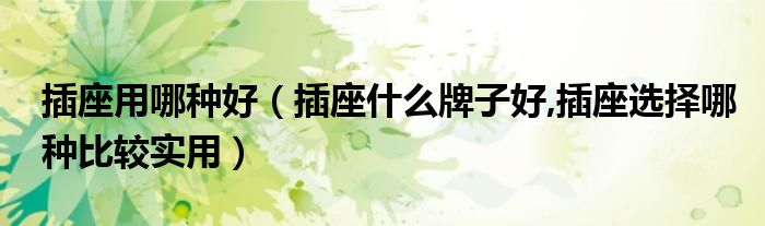 导读 大家好,精选小编来为大家解答以上的问题。插座用哪种好,插座什么牌子好,插座选择哪种比较实用很多人还不知道,现在让我们一起来看看吧!1
