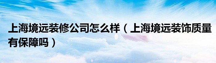 上海境远装修公司怎么样(上海境远装饰质量有保障吗)