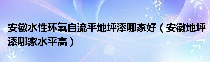 导读 大家好,精选小编来为大家解答以上的问题。安徽水性环氧自流平地坪漆哪家好,安徽地坪漆哪家水平高很多人还不知道,现在让我们一起来看看吧