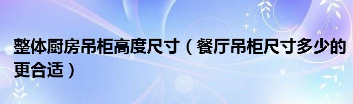 导读 大家好,精选小编来为大家解答以上的问题。整体厨房吊柜高度尺寸,餐厅吊柜尺寸多少的更合适很多人还不知道,现在让我们一起来看看吧!1、1