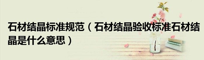 导读 大家好,精选小编来为大家解答以上的问题。石材结晶标准规范,石材结晶验收标准石材结晶是什么意思很多人还不知道,现在让我们一起来看看吧