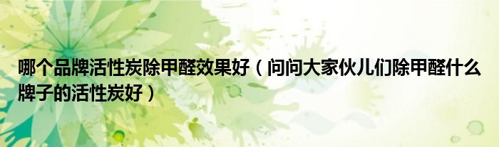 导读 大家好,精选小编来为大家解答以上的问题。哪个品牌活性炭除甲醛效果好,问问大家伙儿们除甲醛什么牌子的活性炭好很多人还不知道,现在让我