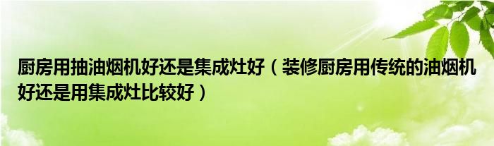 厨房用抽油烟机好还是集成灶好(装修厨房用传统的油烟机好还是用集成灶比较好)