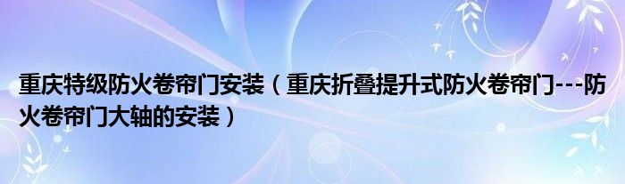 导读 大家好,精选小编来为大家解答以上的问题。重庆特级防火卷帘门安装,重庆折叠提升式防火卷帘门---防火卷帘门大轴的安装很多人还不知道,现