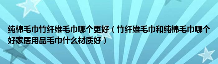 纯棉毛巾竹纤维毛巾哪个更好(竹纤维毛巾和纯棉毛巾哪个好家居用品毛巾什么材质好)