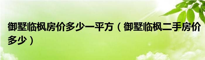 御墅临枫房价多少一平方(御墅临枫二手房价多少)
