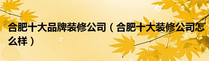 合肥十大品牌装修公司(合肥十大装修公司怎么样)