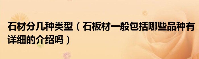 导读 大家好,精选小编来为大家解答以上的问题。石材分几种类型,石板材一般包括哪些品种有详细的介绍吗很多人还不知道,现在让我们一起来看看吧