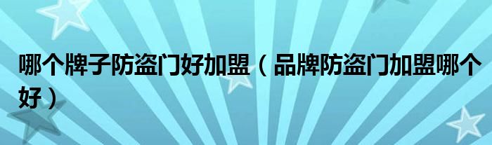 哪个牌子防盗门好加盟(品牌防盗门加盟哪个好)
