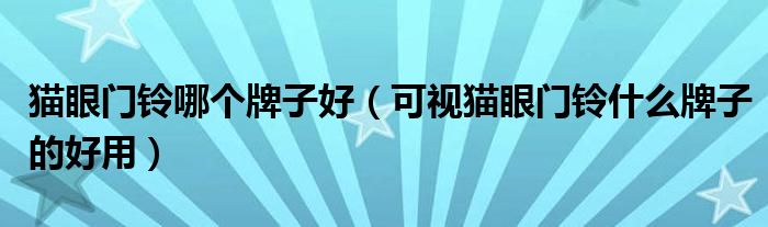 导读 大家好,精选小编来为大家解答以上的问题。猫眼门铃哪个牌子好,可视猫眼门铃什么牌子的好用很多人还不知道,现在让我们一起来看看吧!1、