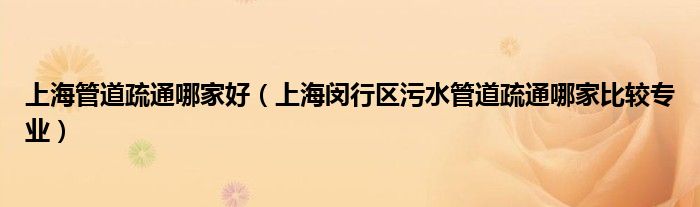 导读 大家好,精选小编来为大家解答以上的问题。上海管道疏通哪家好,上海闵行区污水管道疏通哪家比较专业很多人还不知道,现在让我们一起来看看