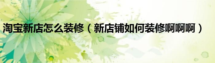 淘宝新店怎么装修(新店铺如何装修啊啊啊)