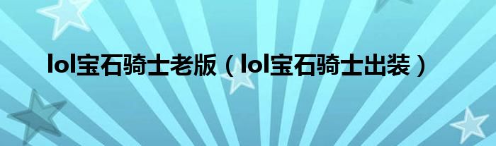 大家好,麟非来为大家解答以上问题,lol宝石骑士老版,lol宝石骑士出装很多人还不知道,现在让我们一起来看看吧!