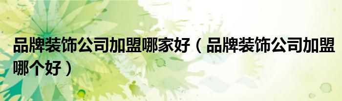 品牌装饰公司加盟哪家好(品牌装饰公司加盟哪个好)