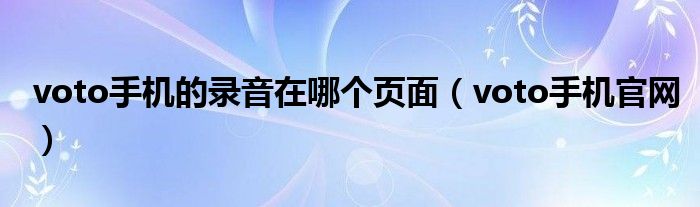 大家好,麟非来为大家解答以上问题,voto手机的录音在哪个页面,voto手机官网很多人还不知道,现在让我们一起来看看吧!