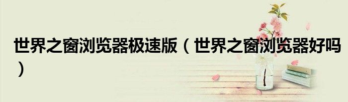 世界之窗浏览器极速版(世界之窗浏览器好吗)