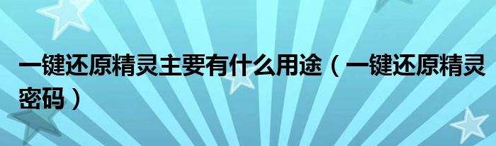 一键还原精灵主要有什么用途(一键还原精灵密码)