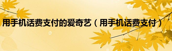 大家好,麟非来为大家解答以上问题,用手机话费支付的爱奇艺,用手机话费支付很多人还不知道,现在让我们一起来看看吧!