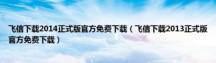 飞信下载2014正式版官方免费下载(飞信下载2013正式版官方免费下载)