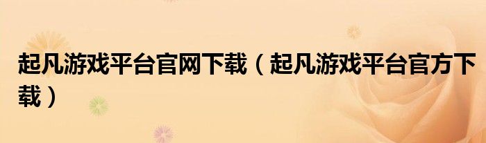 起凡游戏平台官网下载(起凡游戏平台官方下载)