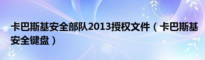 卡巴斯基安全部队2013授权文件(卡巴斯基安全键盘)