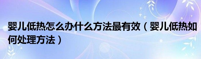 婴儿低热怎么办什么方法最有效(婴儿低热如何处理方法)