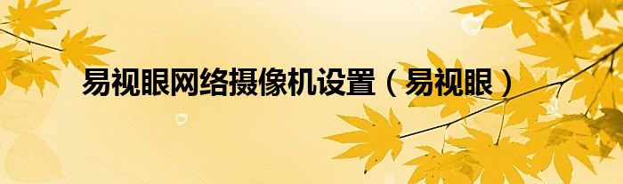 易视眼网络摄像机设置(易视眼)