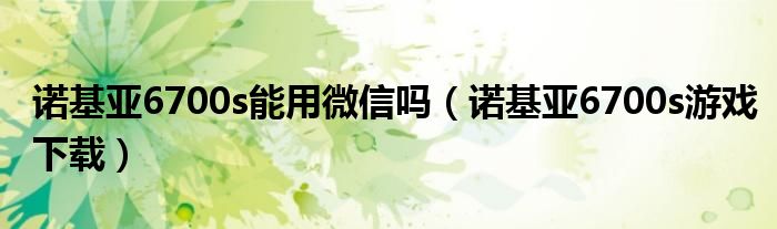 诺基亚6700s能用微信吗(诺基亚6700s游戏下载)