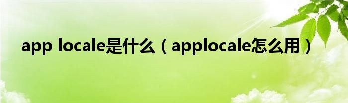 大家好,麟非来为大家解答以上问题,app locale是什么,applocale怎么用很多人还不知道,现在让我们一起来看看吧!
