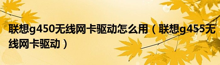 联想g450无线网卡驱动怎么用(联想g455无线网卡驱动)
