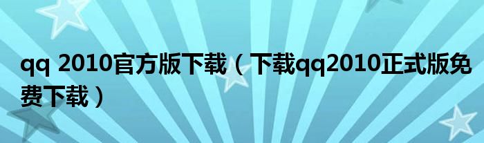 qq 2010官方版下载(下载qq2010正式版免费下载)