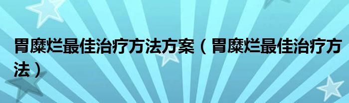 胃糜烂最佳治疗方法方案(胃糜烂最佳治疗方法)
