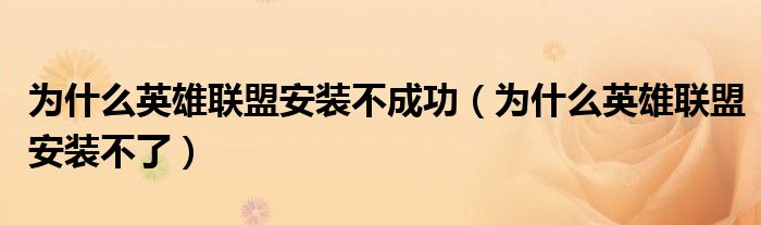 为什么英雄联盟安装不成功(为什么英雄联盟安装不了)