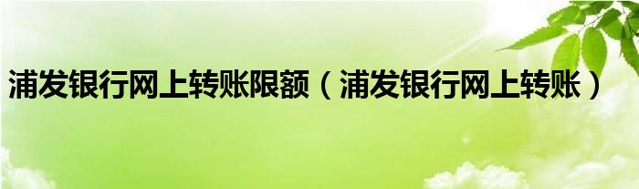 大家好,麟非来为大家解答以上问题,浦发银行网上转账限额,浦发银行网上转账很多人还不知道,现在让我们一起来看看吧!