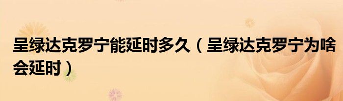 呈绿达克罗宁能延时多久(呈绿达克罗宁为啥会延时)