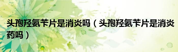 头孢羟氨苄片是消炎吗(头孢羟氨苄片是消炎药吗)