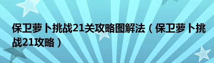 导读 大家好,麟非来为大家解答以上问题,保卫萝卜挑战21关攻略图解法,保卫萝卜挑战21攻略很多人还不知道,现在让我们一起来看看吧!如何防守萝