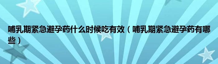 哺乳期紧急避孕药什么时候吃有效(哺乳期紧急避孕药有哪些)